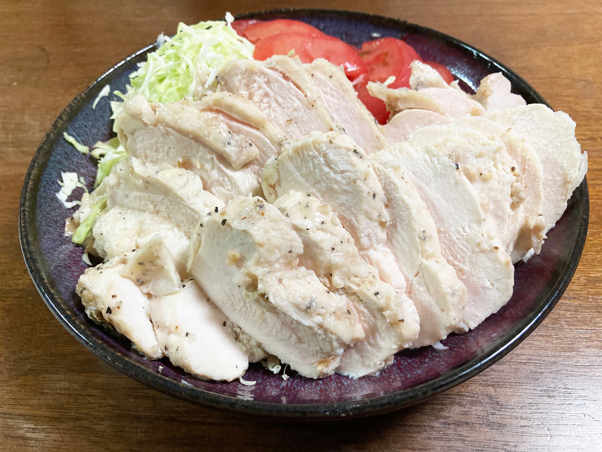 ネットでサラダチキンの作り方をいくつか検索して、何となく手順を確認したうえで主婦の「カン」という名のオリジナルレシピです。